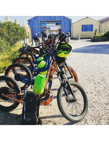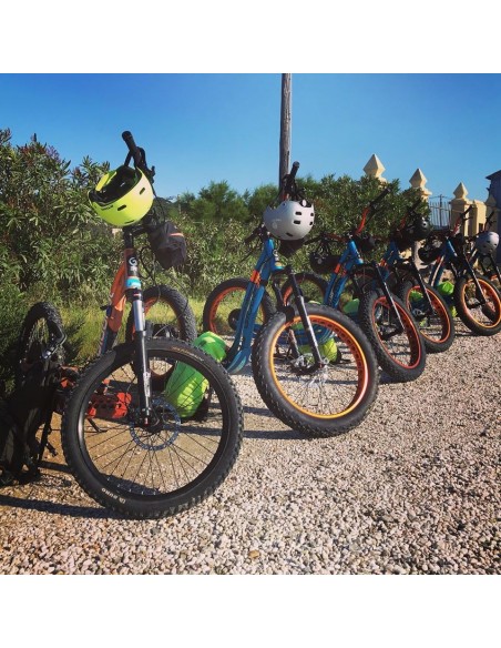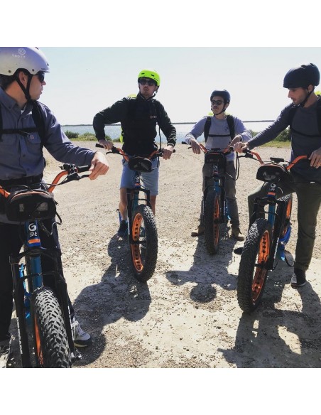 Visite guidée en Trottinette tout terrain électrique passe par des chemins assez faciles dans l’ensemble. Le niveau technique minimum demandé est de savoir faire du vélo. Après une rapide prise en main, vous allez suivre notre guide qui va vous faire traverser tout le salin afin d’observer la prise d’eau en mer au niveau de la plage sauvage.