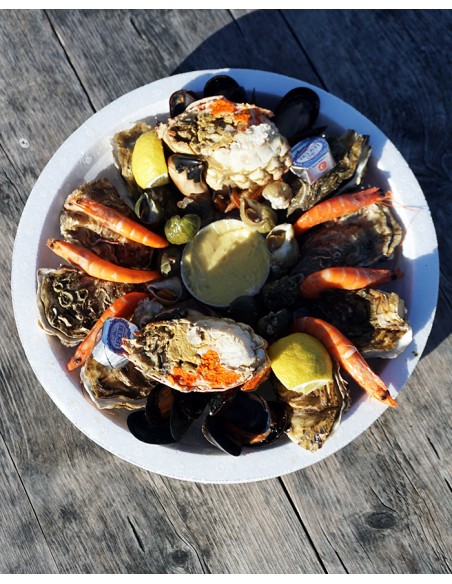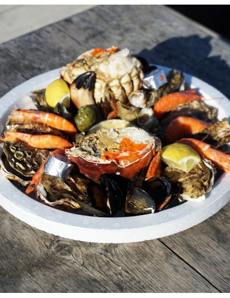 8 Huitres, 6 Crevettes, 12 Bulots, 8 Moules crues, 1 Tourteau (env.550gr)