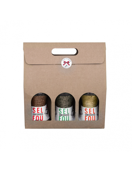 Composition sel fou n°1 : Gros sel de Mer, Paprika, Romarin, Coriandre, Thym, Fenouil, Poivre concassé.