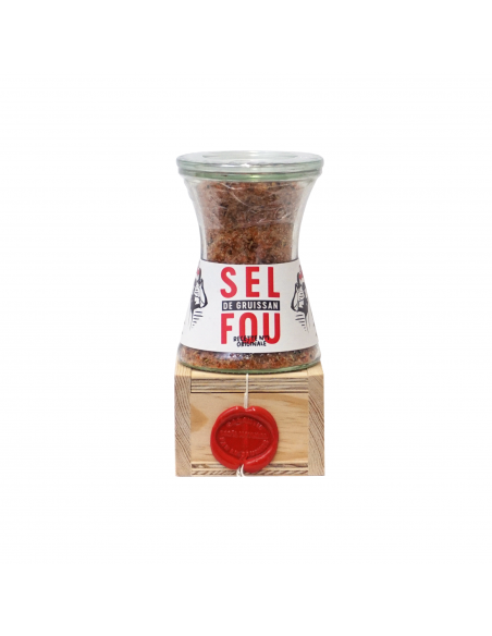 Composition sel fou n°1 : Gros sel de Mer et épices BIO* : Paprika, Romarin, Coriandre, Thym, Fenouil, Poivre concassé